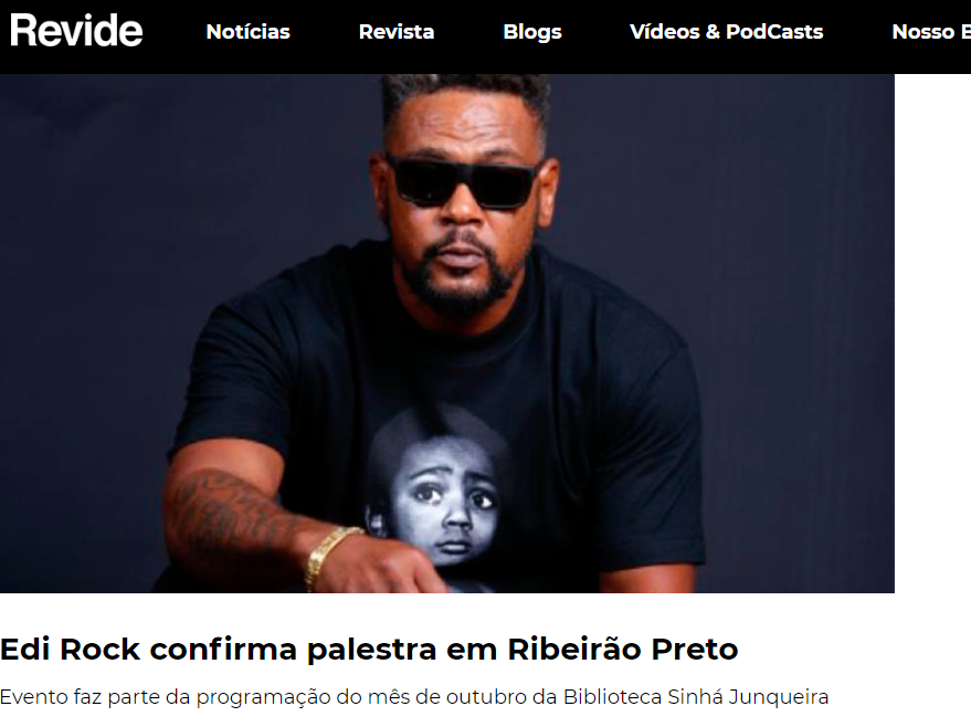 A Biblioteca Sinha Junqueira recebe no dia 20 de outubro a palestra "Origens" do rapper Edi Rock, do grupo Racionais Mc's.